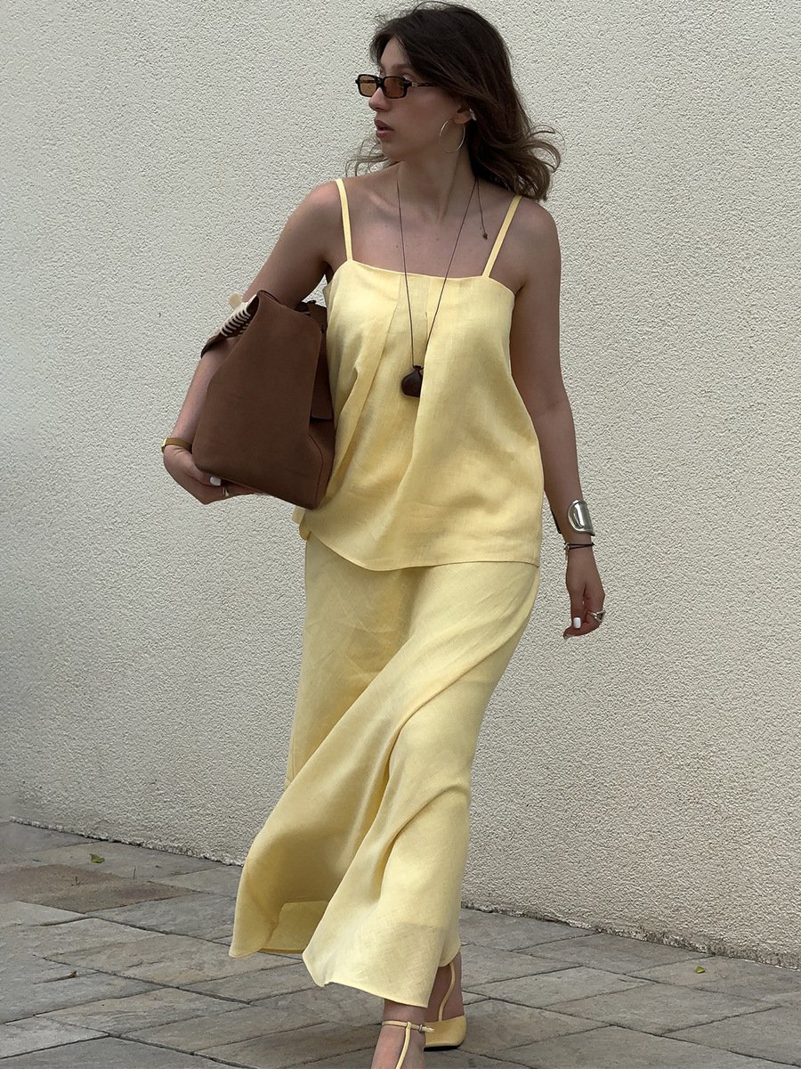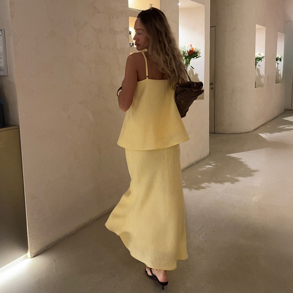 Cotton suspender skirt suit, lazy suspender + fishtail skirt long skirt suit