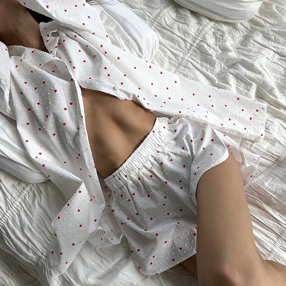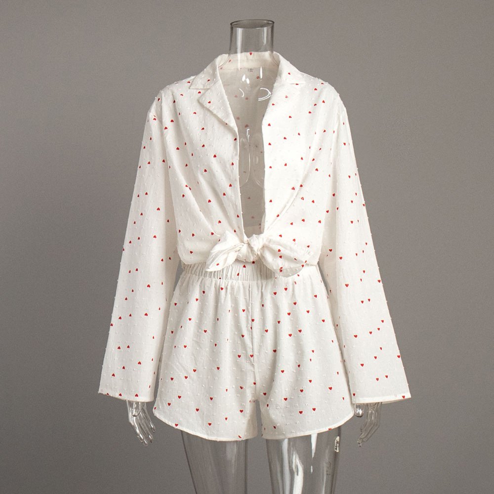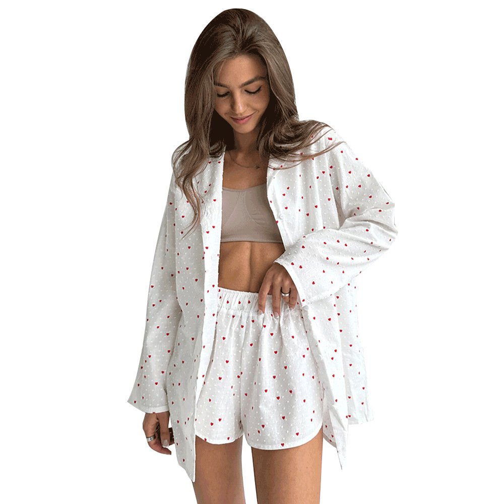Love printed pajamas set women’s printed long-sleeved shorts pajamas two-piece set
