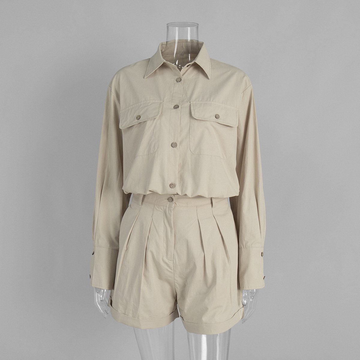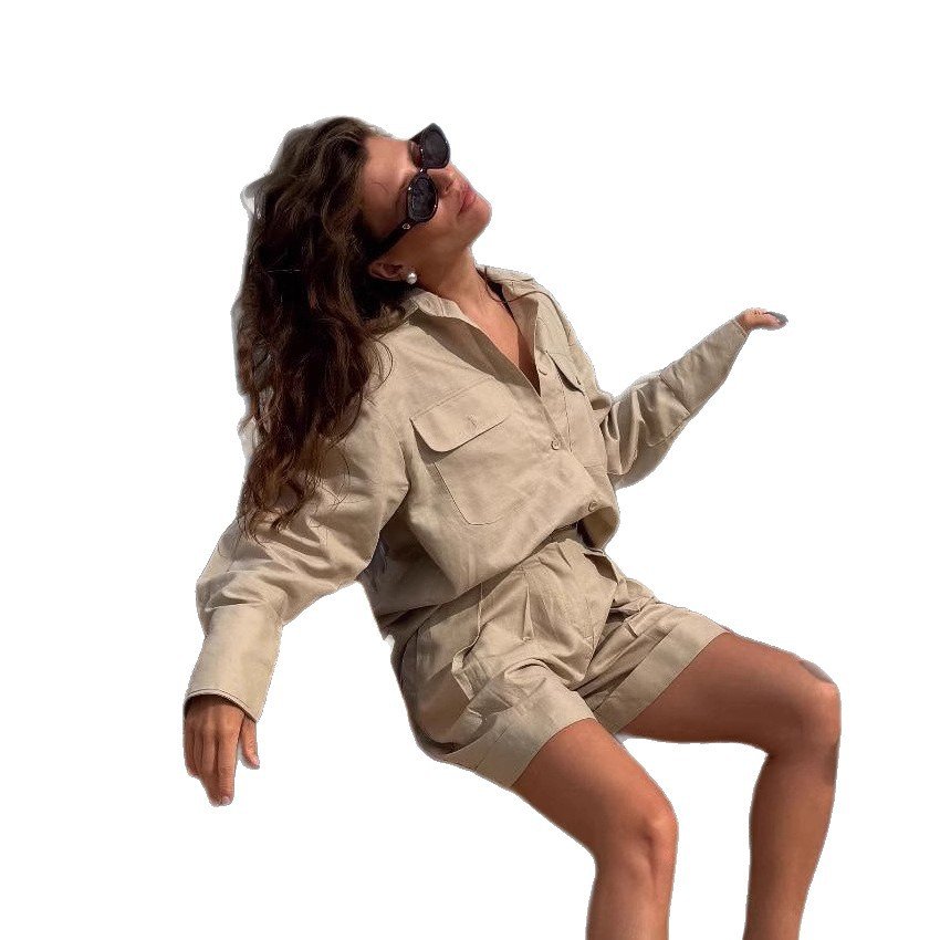 Pure cotton long-sleeved shirt shorts suit women’s summer loose breathable fashionable casual suit