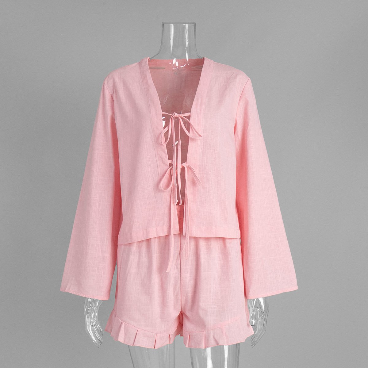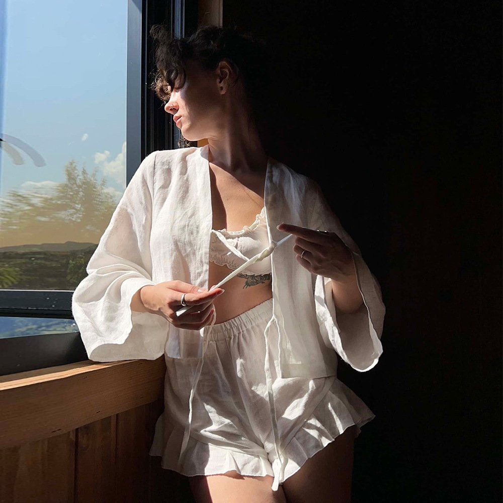 Pure cotton strappy cardigan + shorts set loose casual shorts set for women