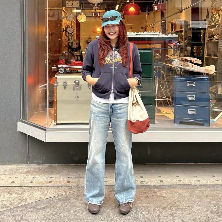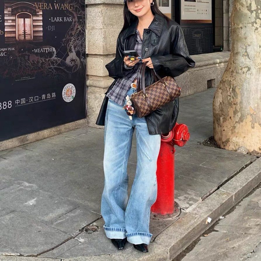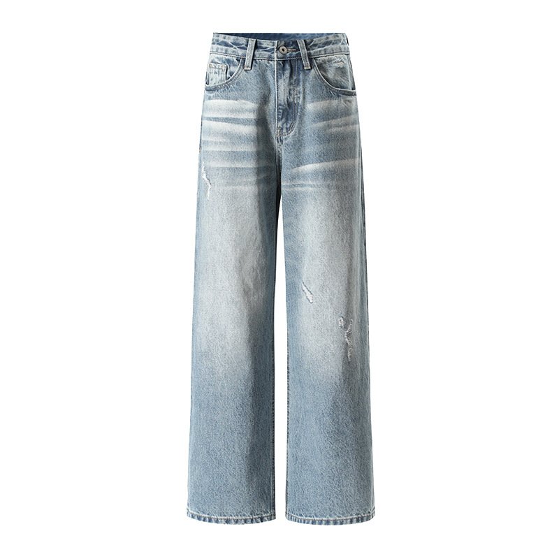 Retro lazy slim fit mid-waist handmade whiskered washed silhouette distressed jeans