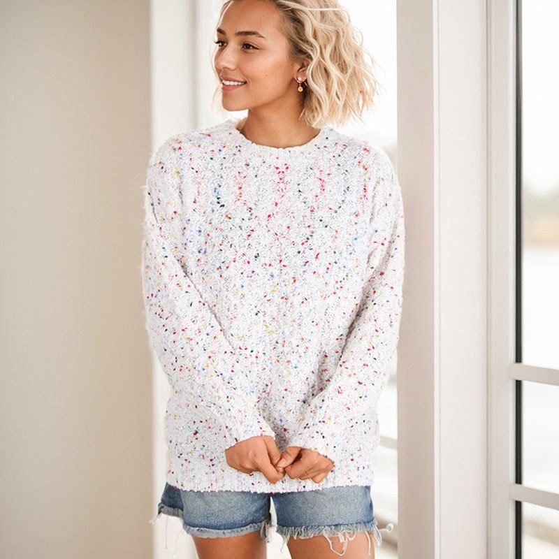 Round neck pullover long-sleeved knitted top colorful dot temperament commuter sweater for women