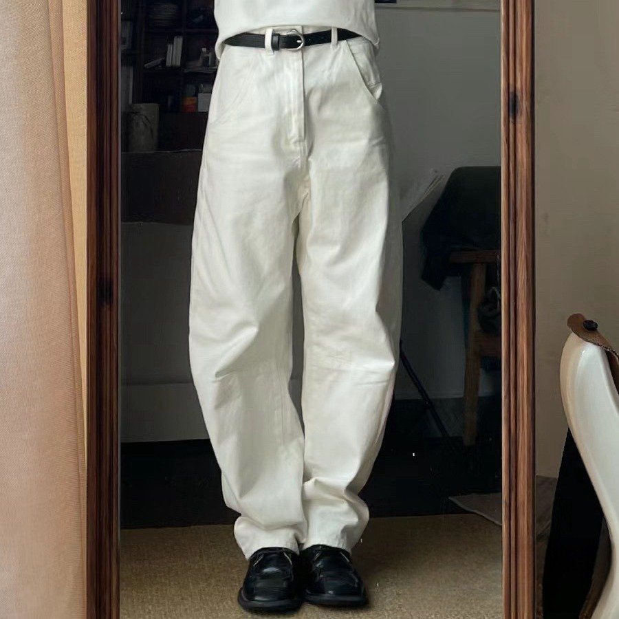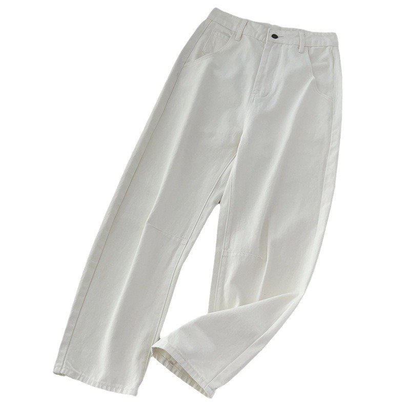 Sickle-shaped jeans, wide-legged, pear-shaped pants, white slimming trousers, retro jeans, women’s banana pants