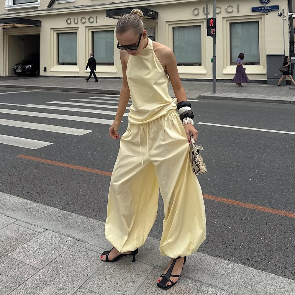 Sleeveless top, bloomer suit, halterneck halter top, lace-up trousers two-piece set