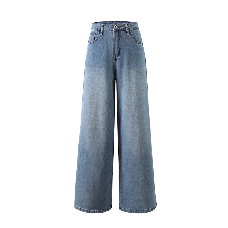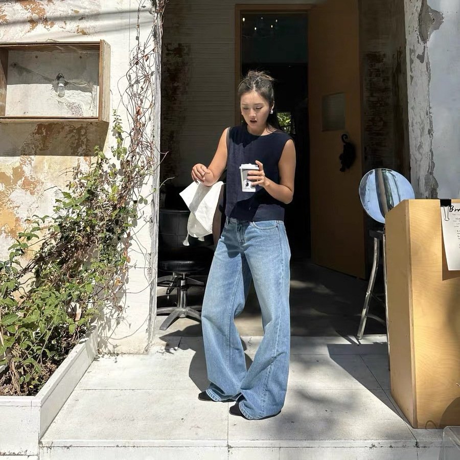 Slim mid-waist classic retro silhouette soft and breathable summer wide-leg denim trousers for womenSlim mid-waist classic retro silhouette soft and breathable summer wide-leg denim trousers for women