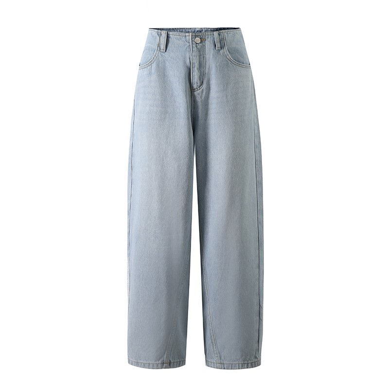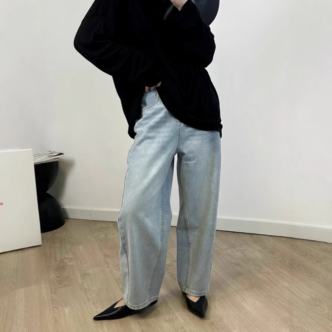 Slim pear-shaped waistband, fashionable and loose, cocoon-shaped split chubby jeans for women