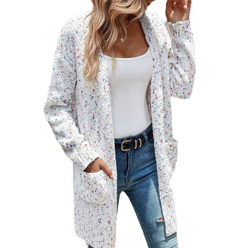 Sweater women's colorful dot cardigan loose long sleeve pocket length sweater for womenSweater women’s colorful dot cardigan loose long sleeve pocket length sweater for women