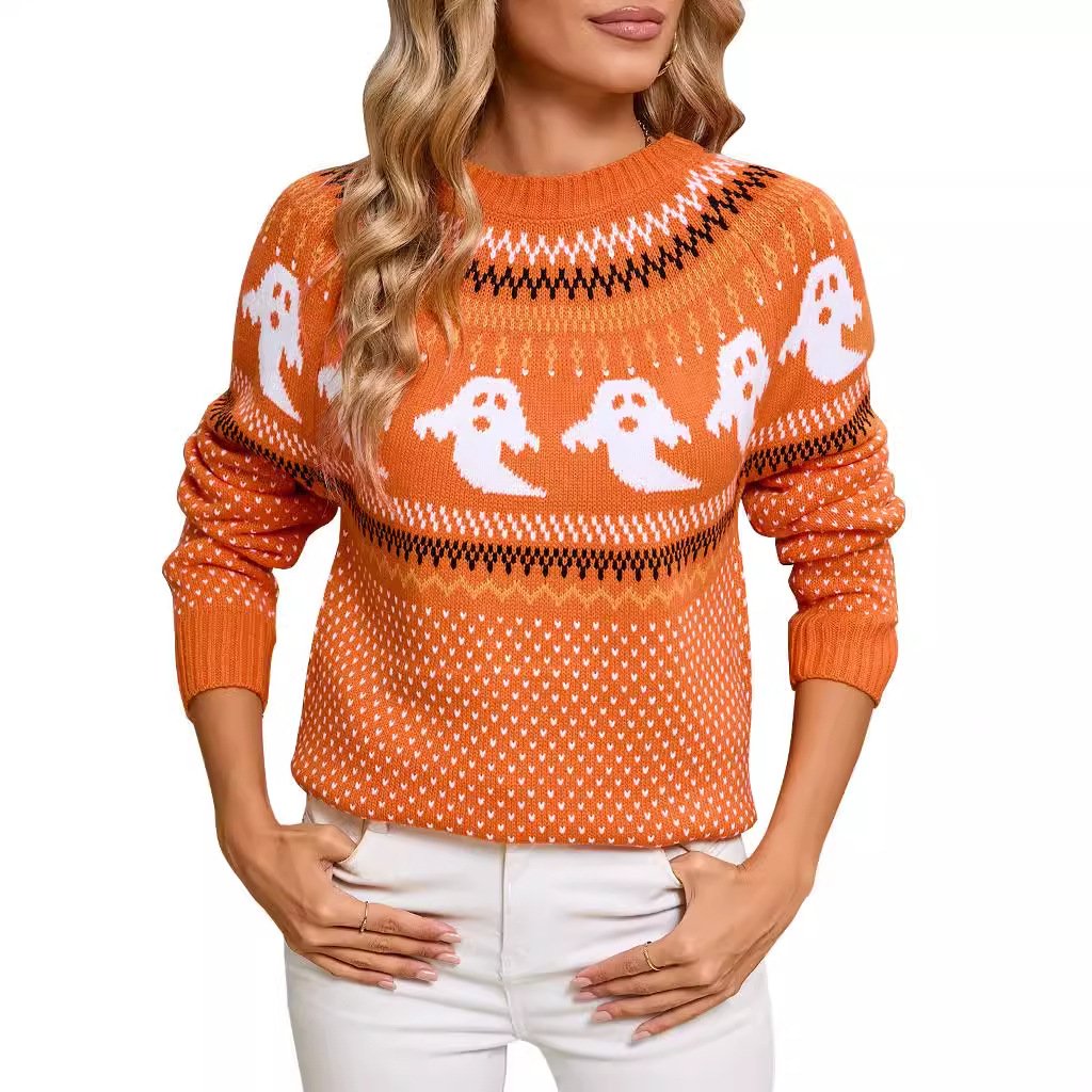 Sweater Women’s Halloween Ghost Retro Polka Dot Long Sleeve Sweater Factory