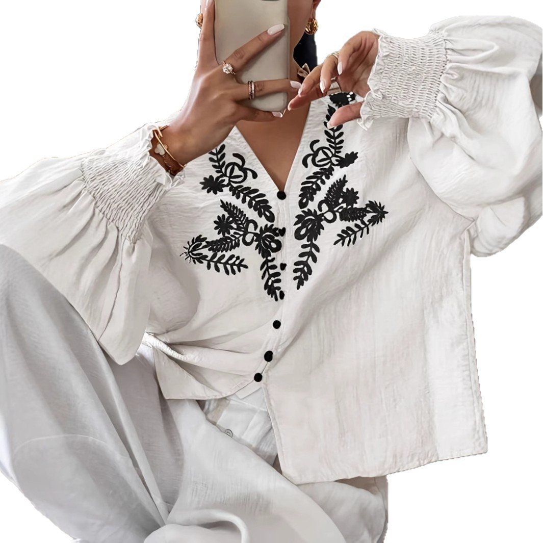 Temperament Commuting Floral Embroidered Shirt Women’s Autumn Fashion Single Breasted Long Sleeve Shirt Women