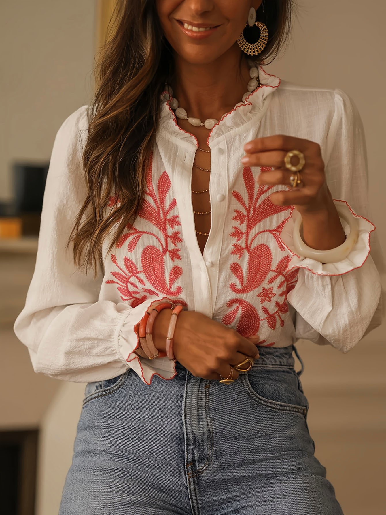 Women's Season Street Style Fashionable Long Sleeve Printed Patchwork Shirt TopWomen’s Season Street Style Fashionable Long Sleeve Printed Patchwork Shirt Top