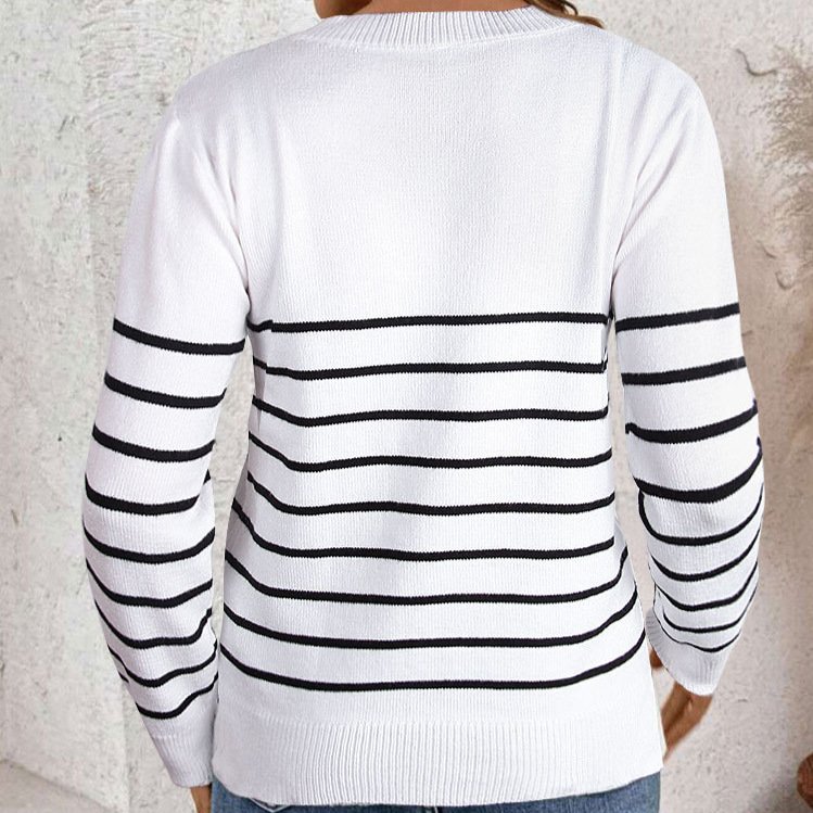 Yangyang Sweater Women’s Casual Versatile Striped Round Neck Long Sleeve Sweater
